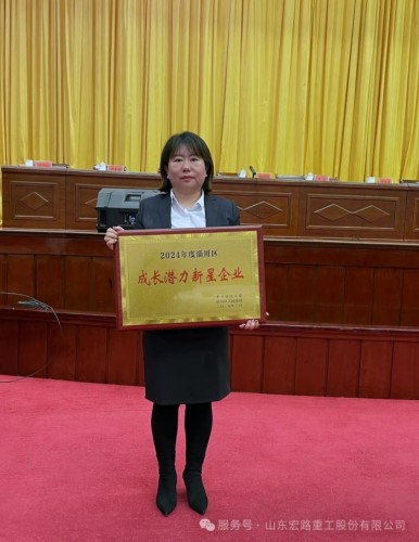 山東宏路重工股份有限公司榮獲了“2024年度淄川區(qū)成長(zhǎng)潛力新星企業(yè)”的榮譽(yù)!宏路股份董事會(huì)秘書(shū)王雪芳代表公司上臺(tái)領(lǐng)獎(jiǎng)。
